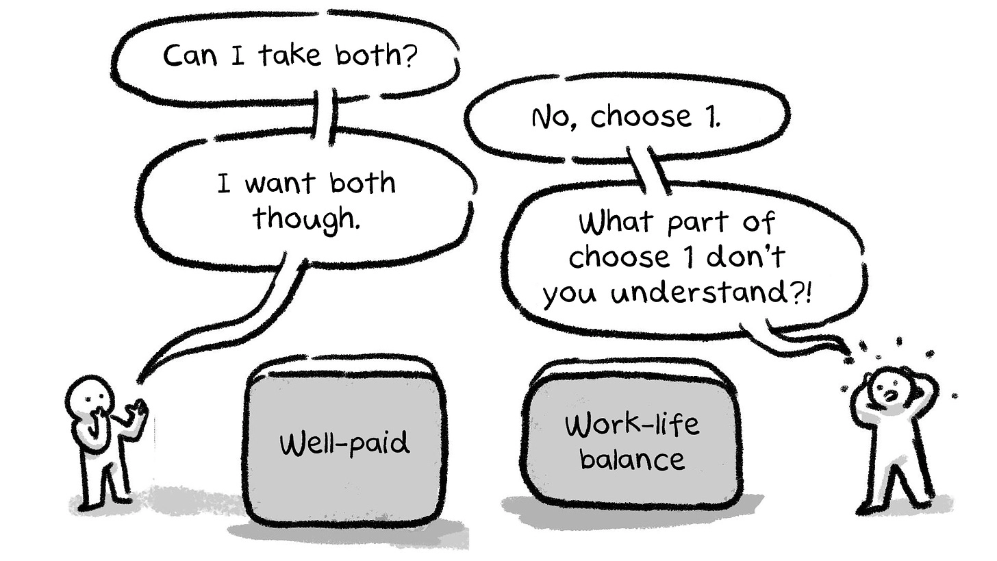 Wanting work-life balance is completely fine. Wanting a high salary is okay too.