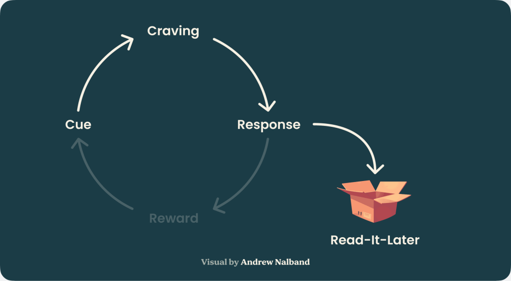 Instead of immediately consuming what’s in front of you, save it so you can revisit it later (at a time that’s reserved for consumption).