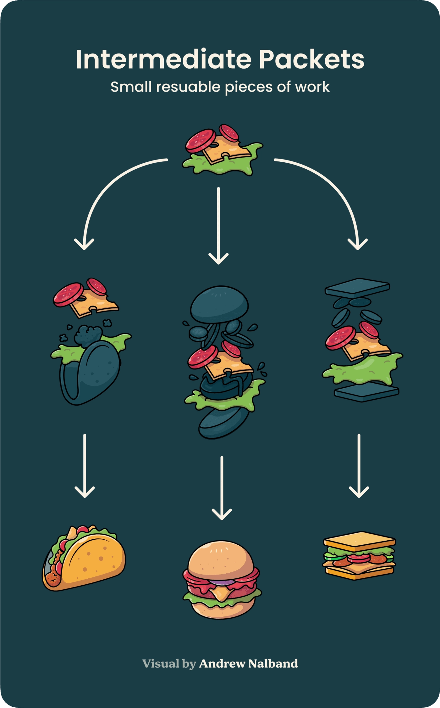 I call them Intermediate Packets, which can include any kind of content we’ve already mentioned: a set of notes from a team meeting, a list of relevant research findings, a brainstorm with collaborators, a slide deck analyzing the market, or a list of action items from a conference call, for example.